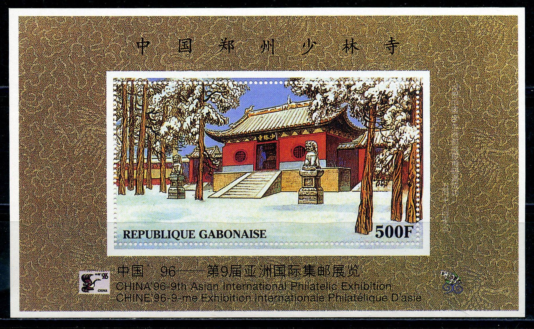 Почтовые марки. Габон 1996 г Филателистическая выставка Китайский храм БЛ 84
