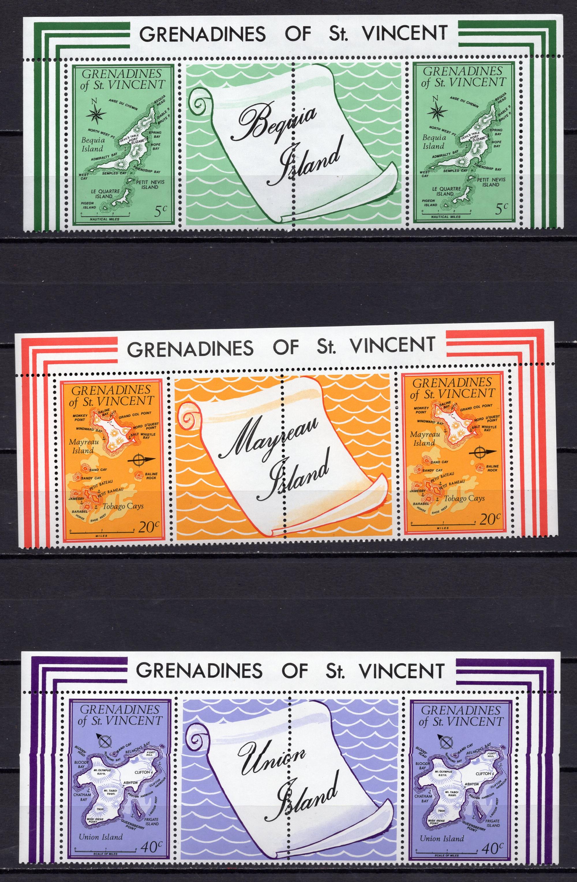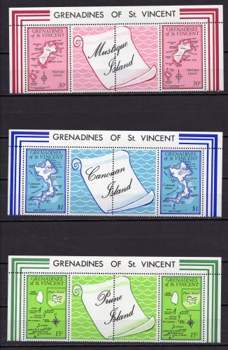 Почтовые марки. Гренадины, 1974 г. Карты и острова. СЦ. №18-23.