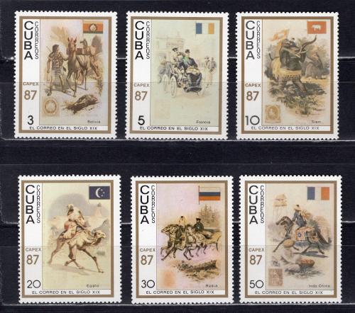 Почтовые марки. Куба. 1987г. История почты. №3102-3107.