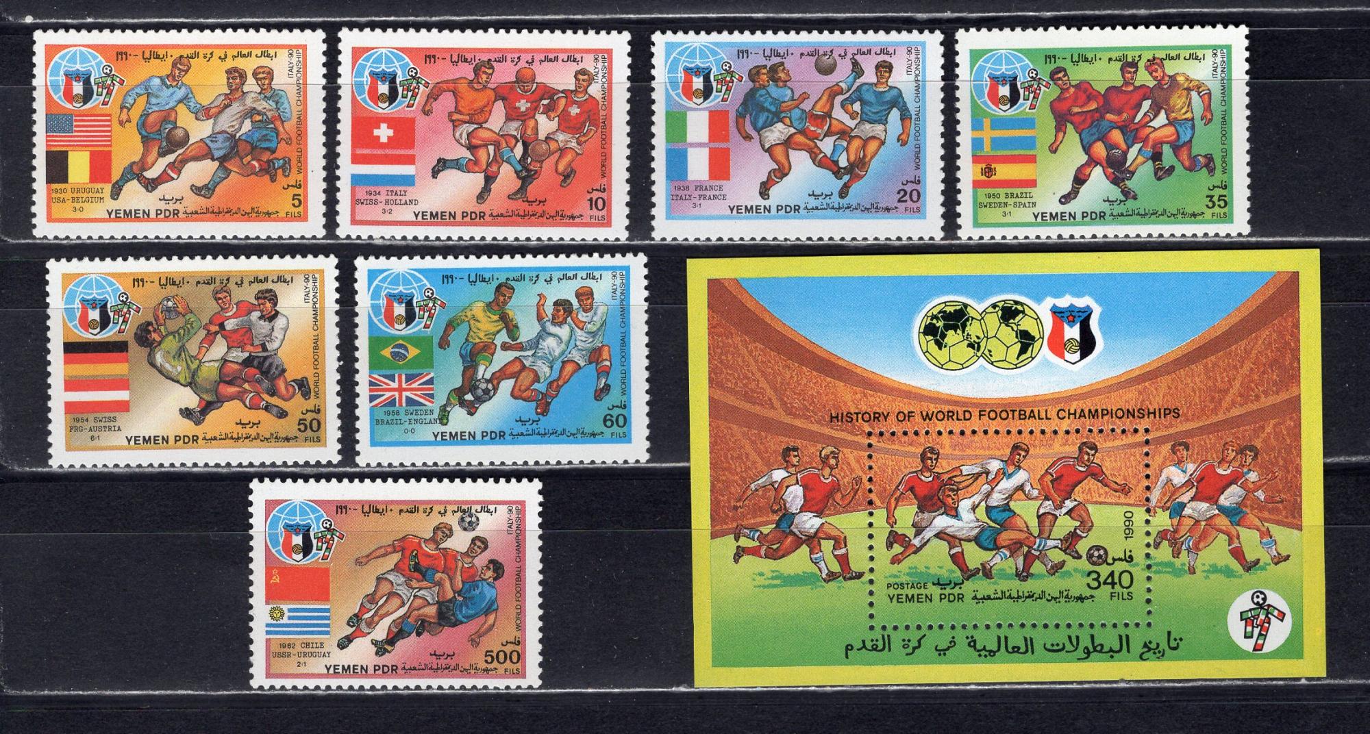 Почтовые марки. Йемен. 1990г. Футбол. №466-472. Блок №25.