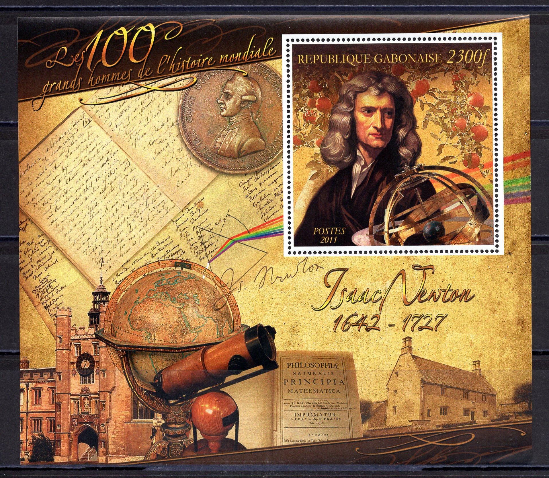 Почтовые марки. Габон. 2011г. Исаак Ньютон. Некатал.