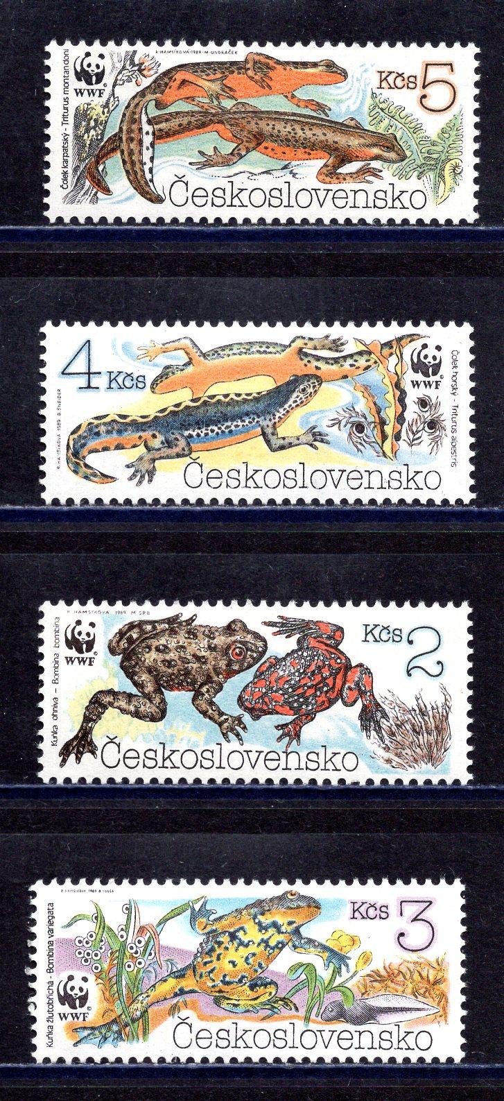 Почтовые марки. ЧССР. 1989г. Тритоны, Лягушки. №3007-3010.