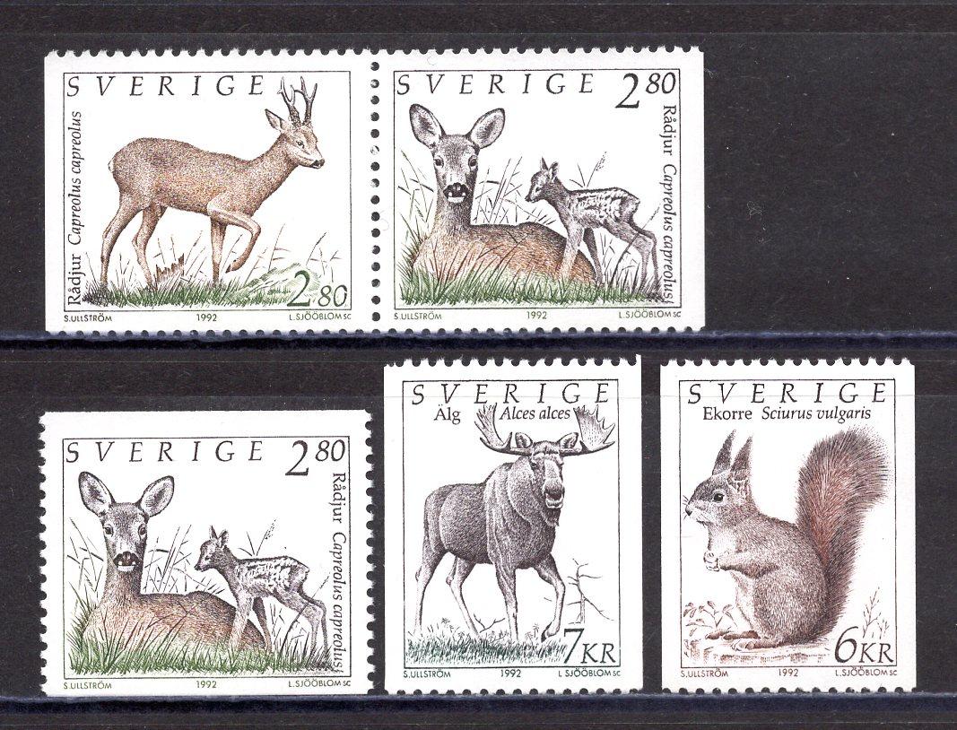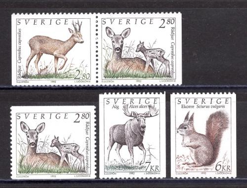 Почтовые марки. Швеция. 1992г. Стандарт. Дикие животные. №1700-1703, А+D.