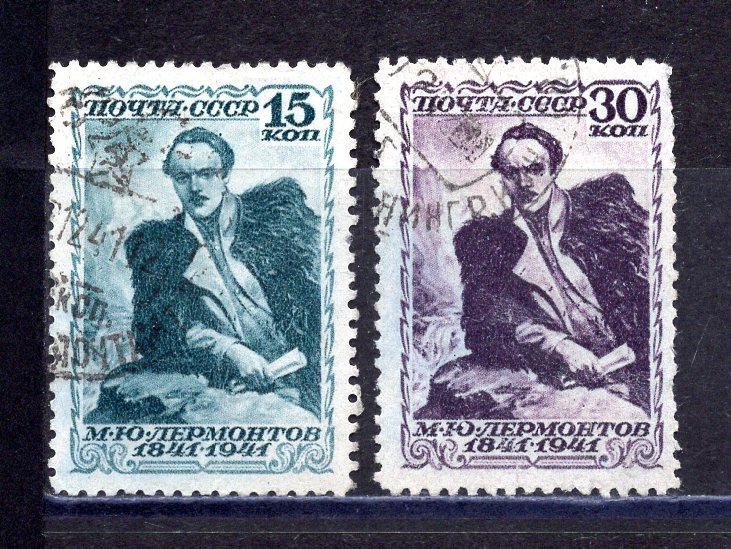Почтовые марки. СССР. 1941г. Лермонтов. №817-818. (См.сост.)