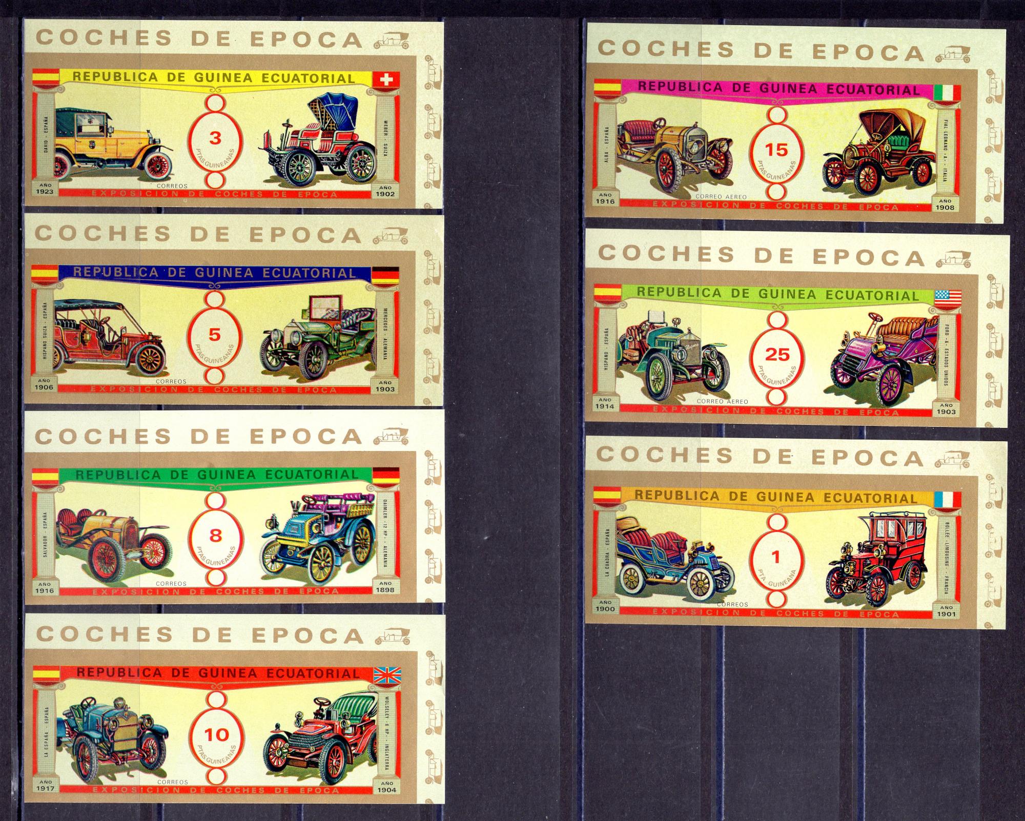 Почтовые марки. Экв. Гвинея. 1976г. Авто-ветераны. №877-883. Безз.