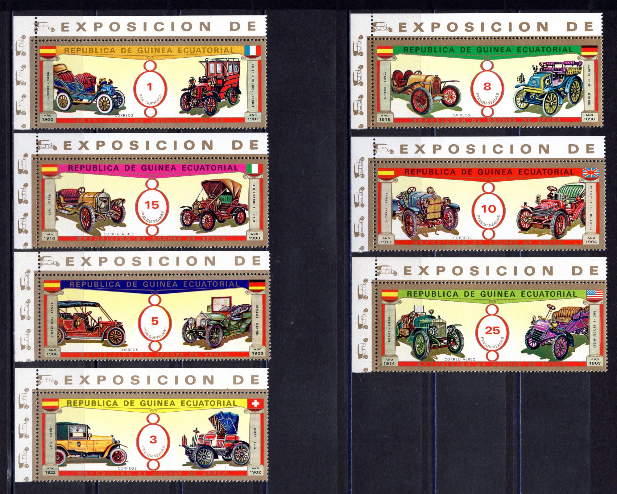 Почтовые марки. Экв. Гвинея. 1976г. Авто-ветераны. №877-883.