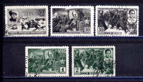 Почтовые марки. СССР. 1942г. Герои СССР. №825-829.