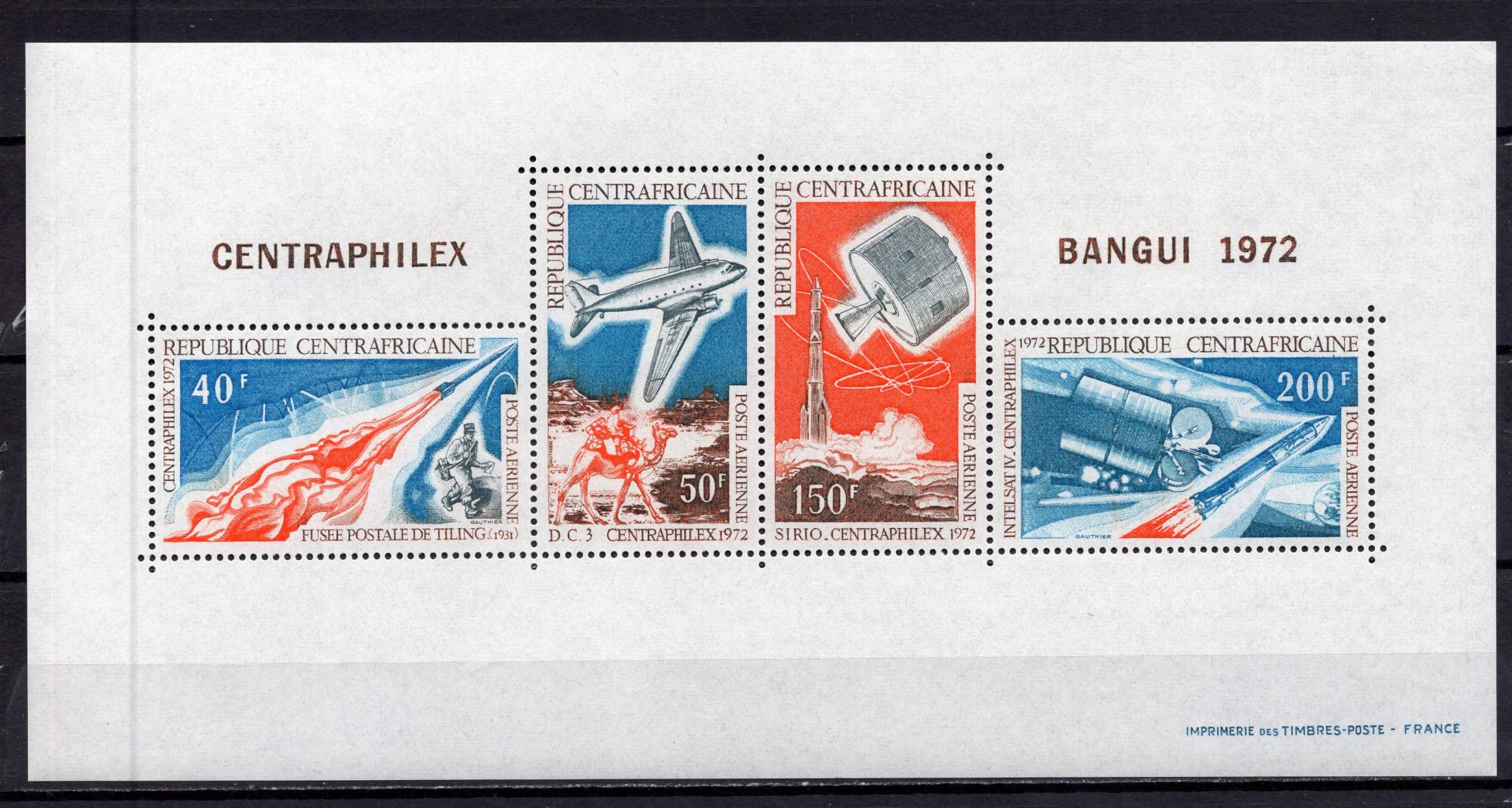 Почтовые марки. ЦАР. 1972г. Космос. Авиация. Блок №7 (см.состояние).