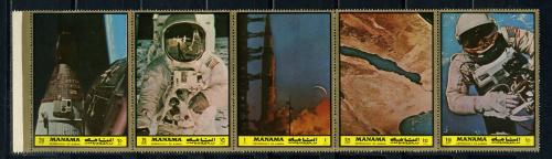 Почтовые марки. Манама. 1972г. Человек в Космосе. (II). №968-972.