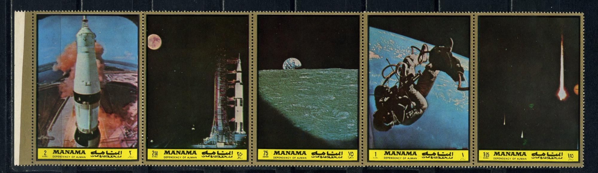 Почтовые марки. Манама. 1972г. Человек в Космосе. (I). №963-967.