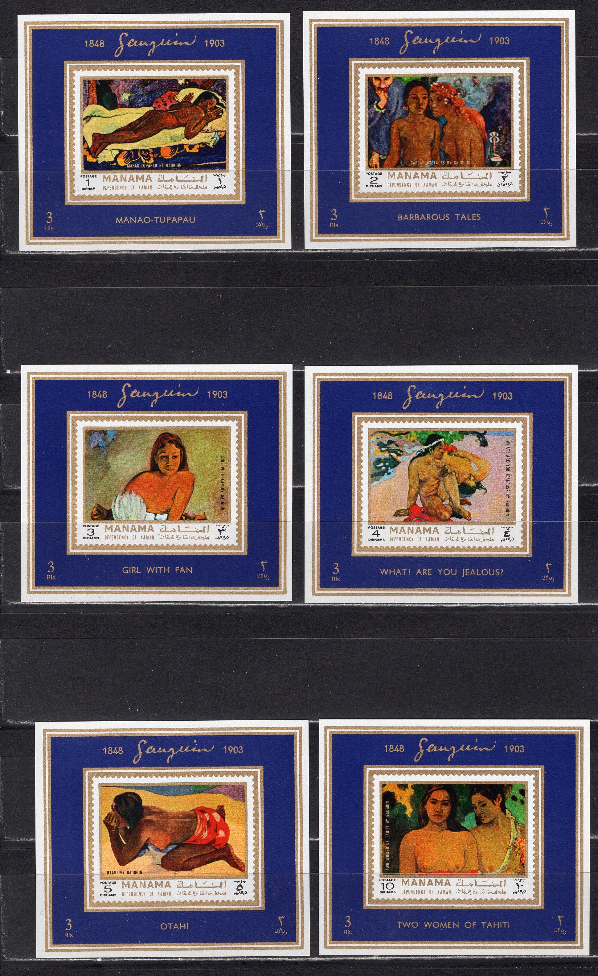 Почтовые марки. Манама. 1971г. Гоген. Люкс-блоки. №875-882 (некомплект)