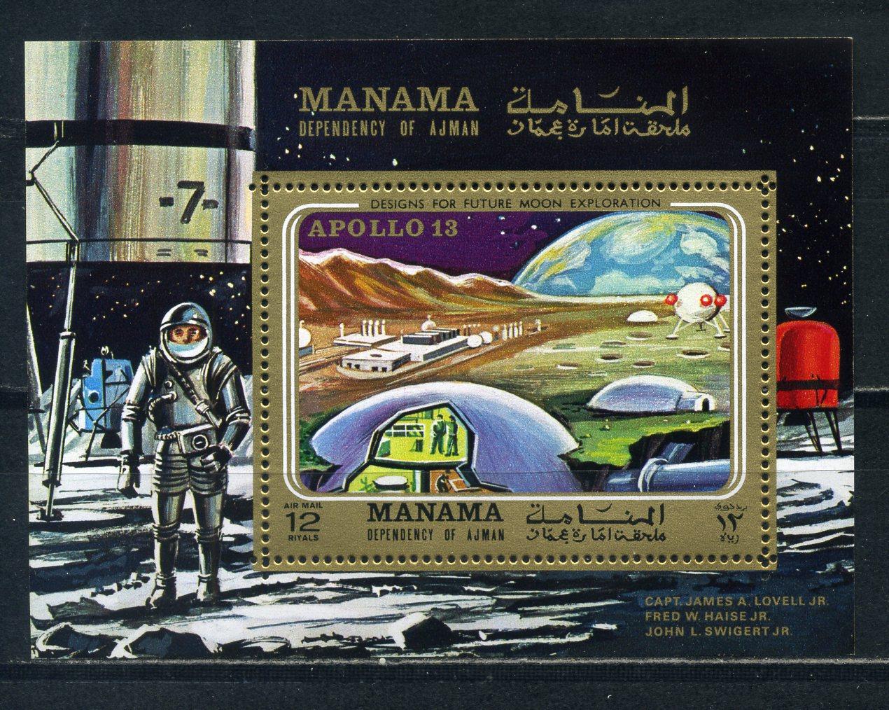 Почтовые марки. Манама. 1970г. Космос. Аполлон-13. Блок №63.