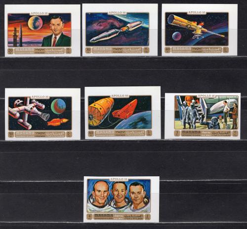 Почтовые марки. Манама. 1972г. Космос. Аполло-16. №746в-752в. Беззубц.