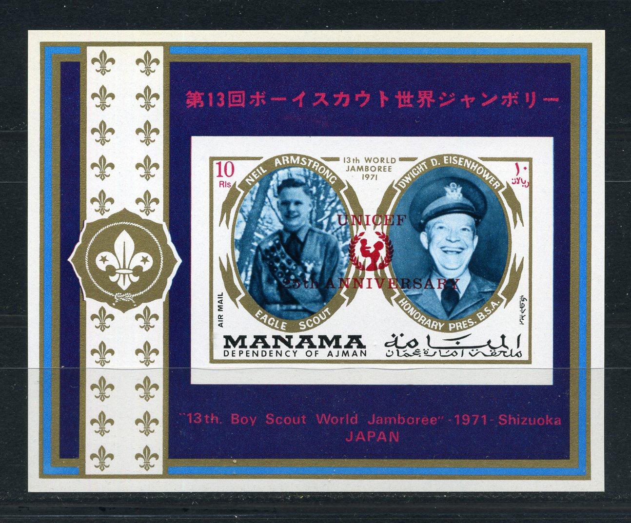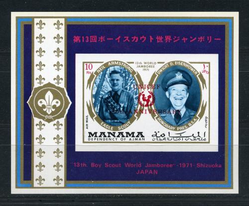 Почтовые марки. Манама. 1971г. Космос. Армстронг. Надпечатка. Блок №170в. Беззубц. (Mi: 15.00 Евро)