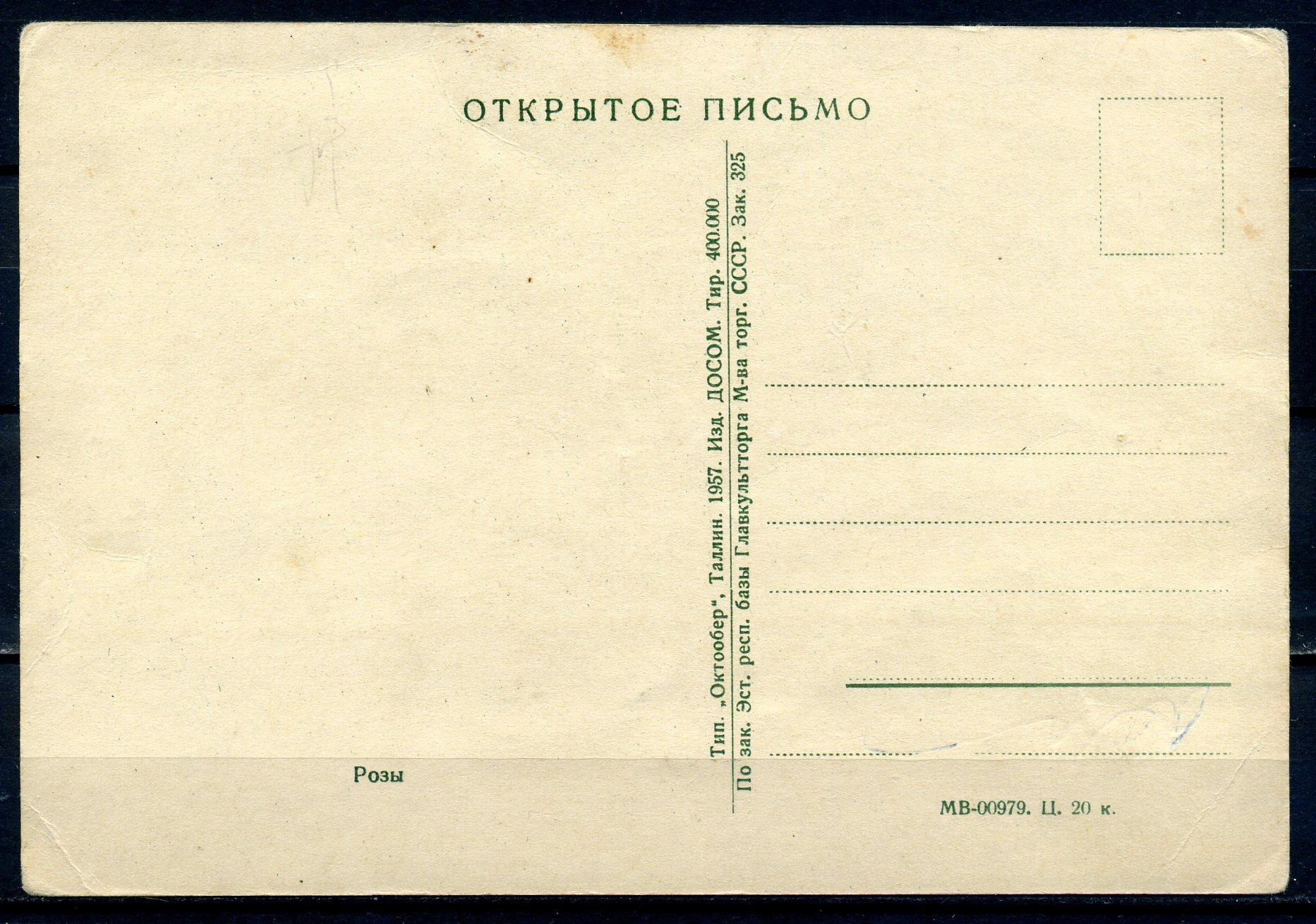 Открытое письмо. ЭССР 1957 г. Розы.