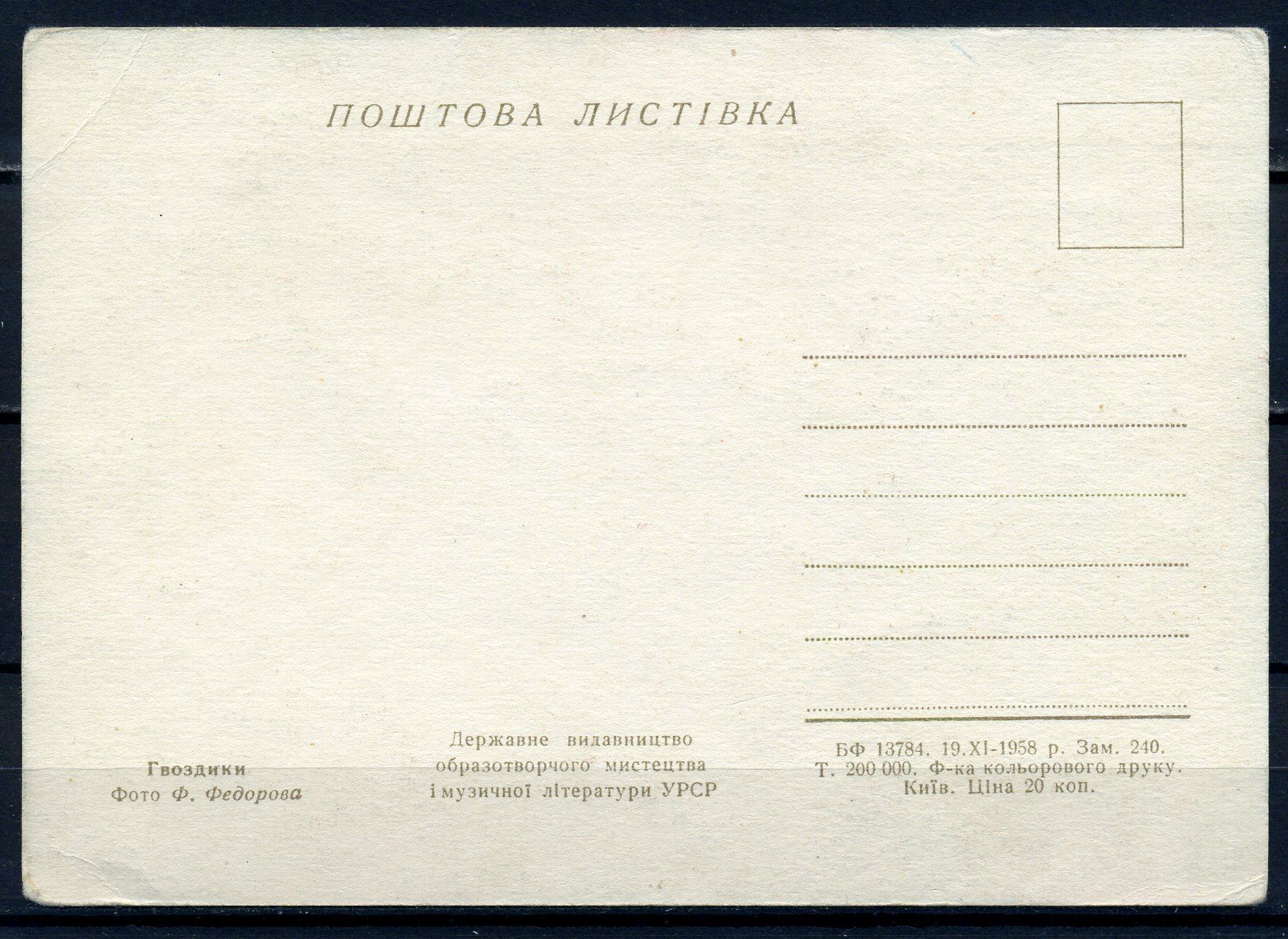 Почтовая карточка. УССР 1958 г. Гвоздики.
