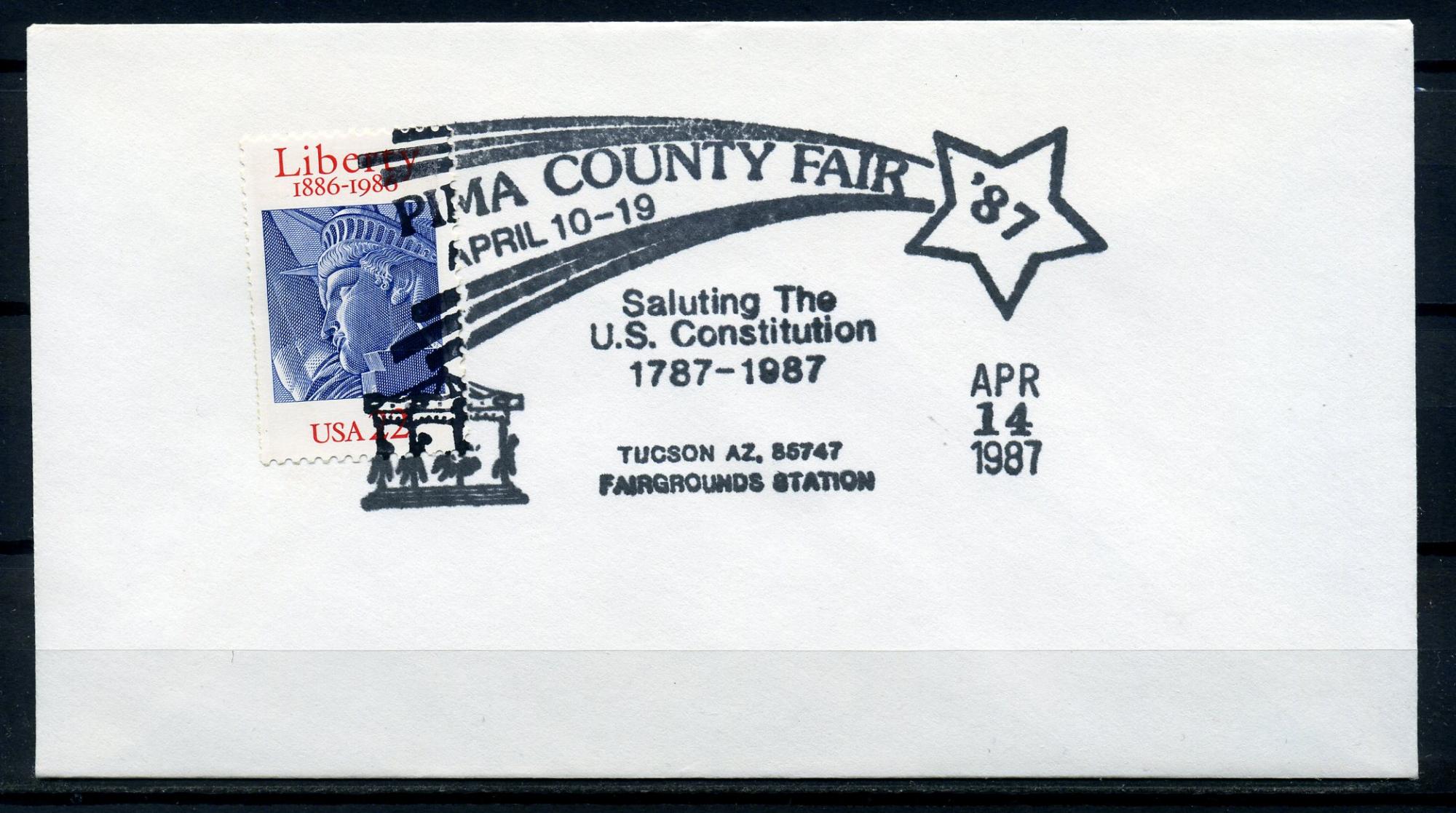 Конверт с маркой и СГ. США 1987г. Ярмарка развлечений округа Пима. КО.