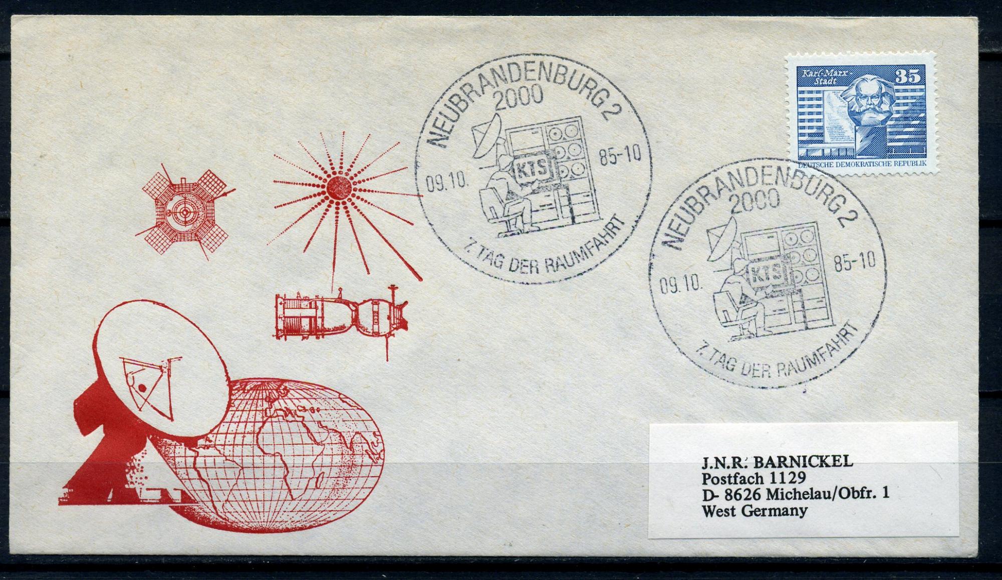 Конверт с маркой и СГ. ГДР 2000г. 7-й день космического полета. КО.