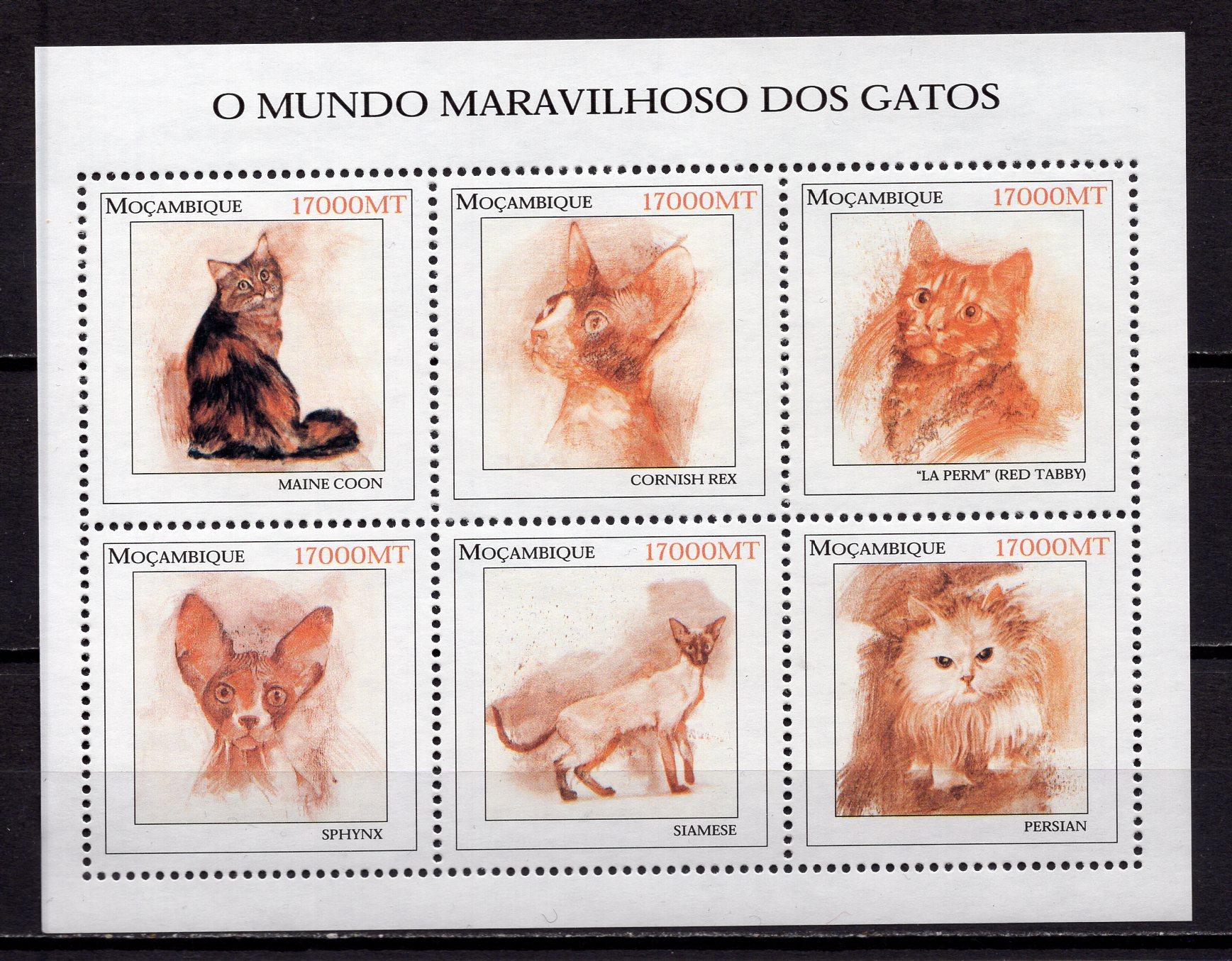 Почтовые марки. Мозамбик, 2002 г. Кошки. МЛ. №2379-84.