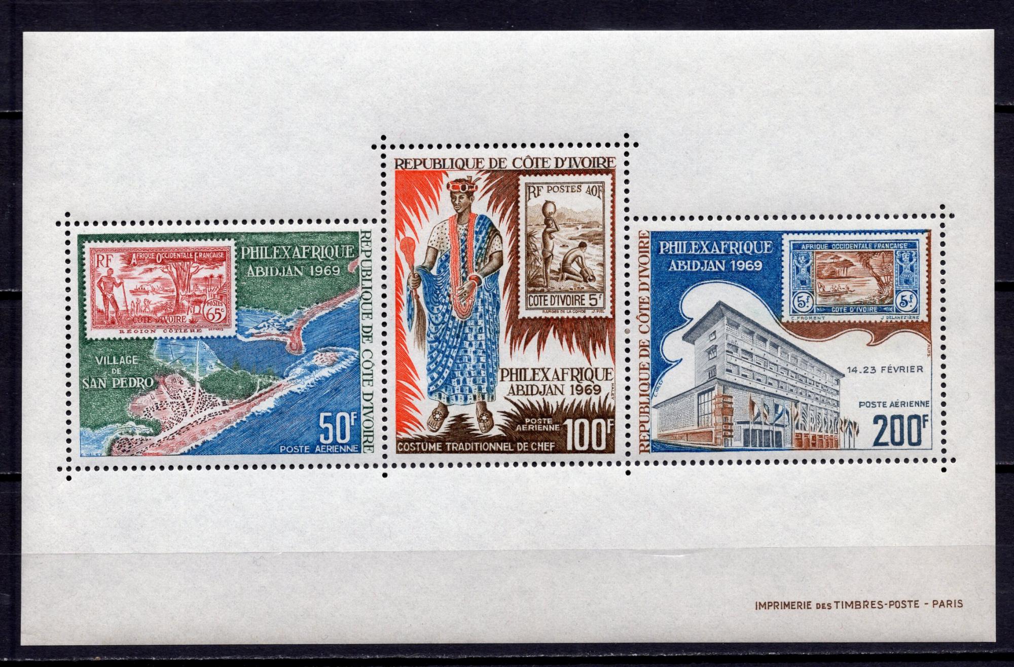 Почтовые марки. Кот-д’Ивуар, 1969 г. Филвыставка. Марки. Металлография. Бл. 4
