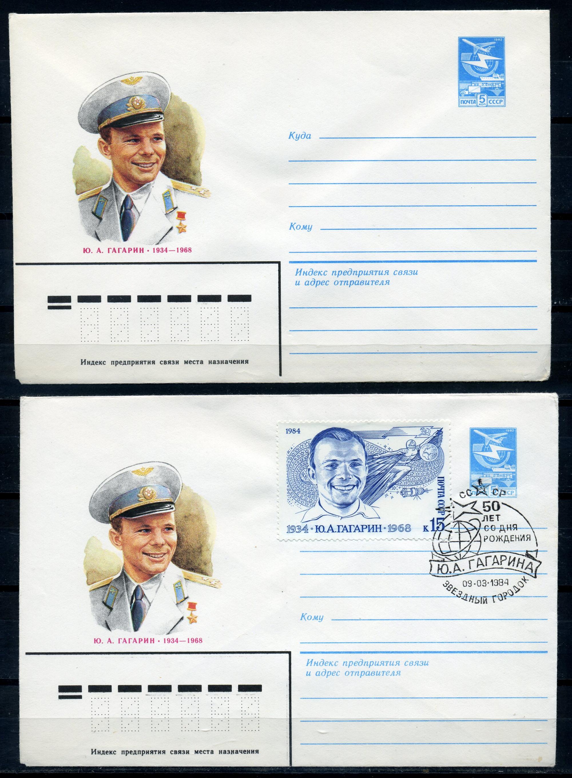 ХМК. Чист. + СГ с маркой. СССР 1984 г. Ю.А. Гагарин. КО.