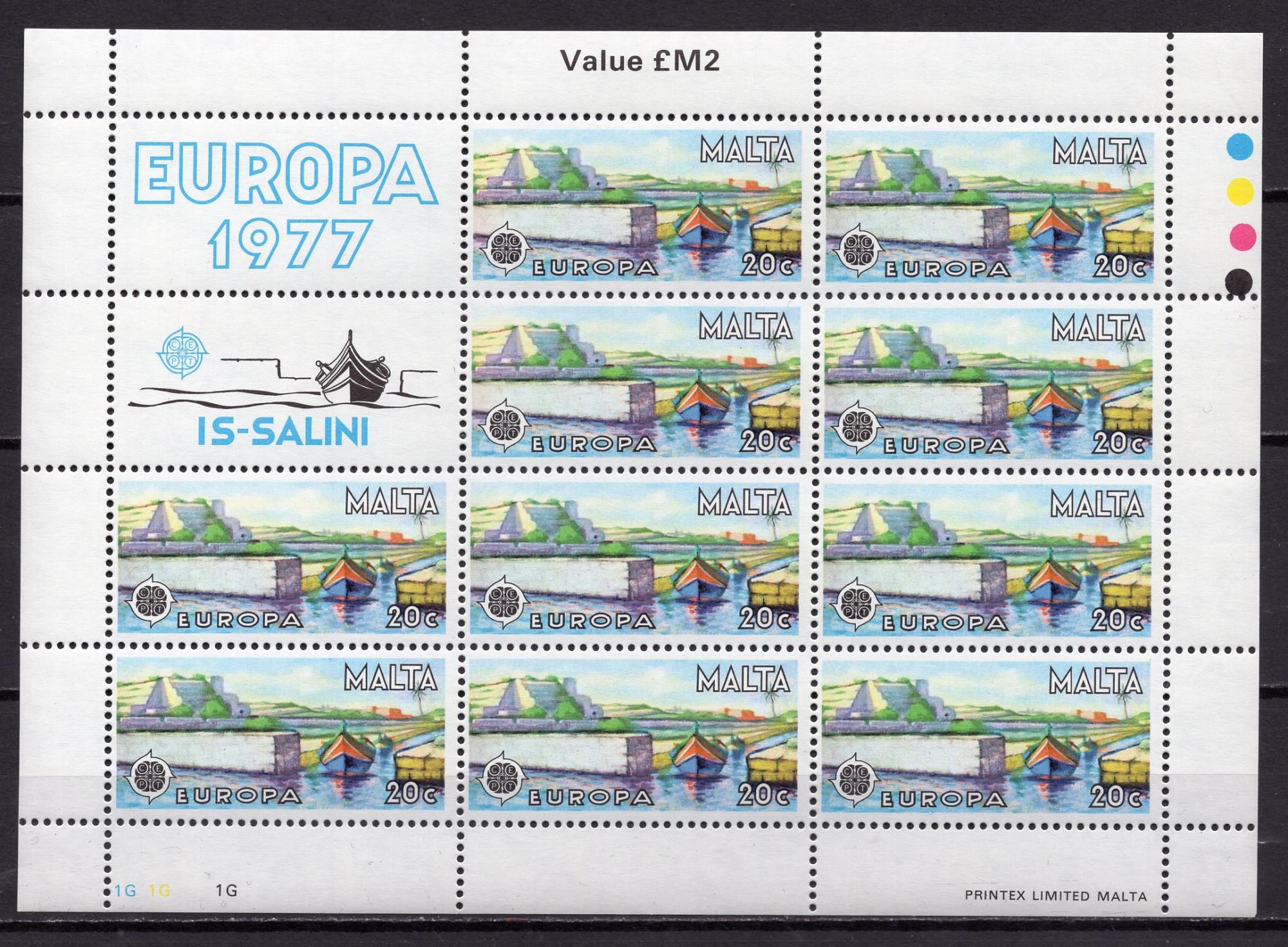 Почтовые марки. Мальта, 1977 г. Европа. Лодки. МЛ. №555.