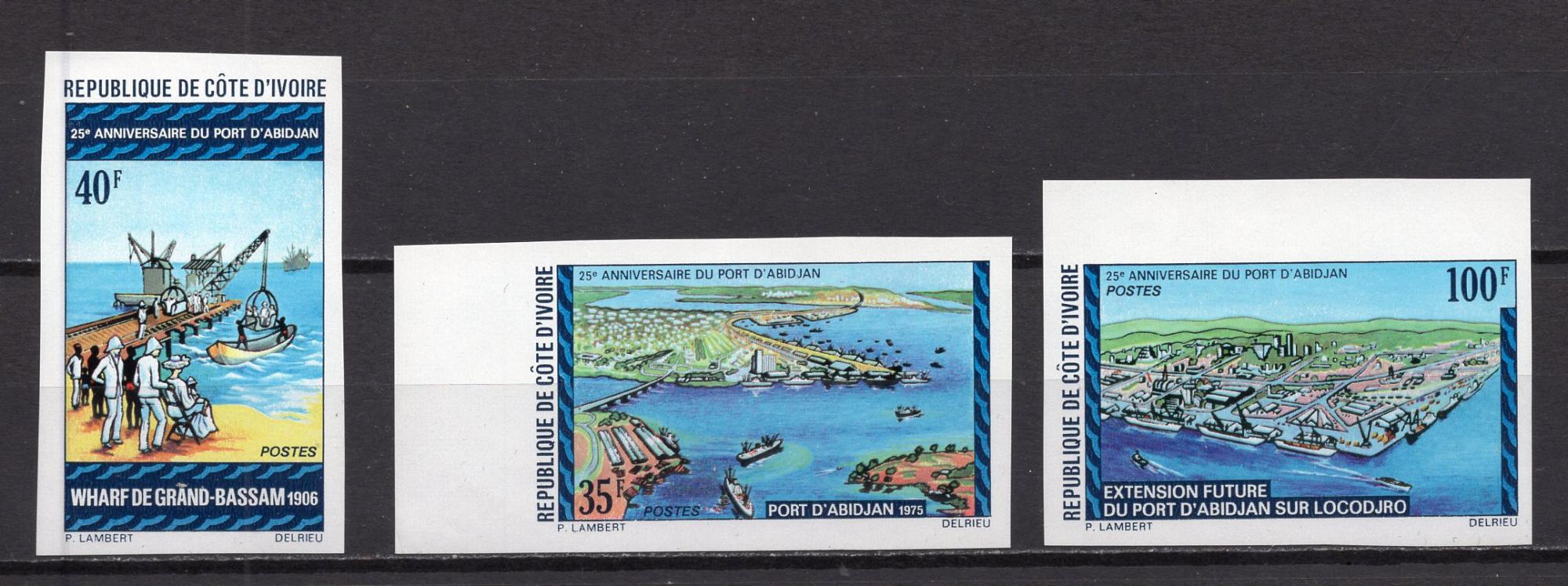 Почтовые марки. Кот-д’Ивуар, 1976 г. Порт Абиджана, 1976 г. №473-475В.
