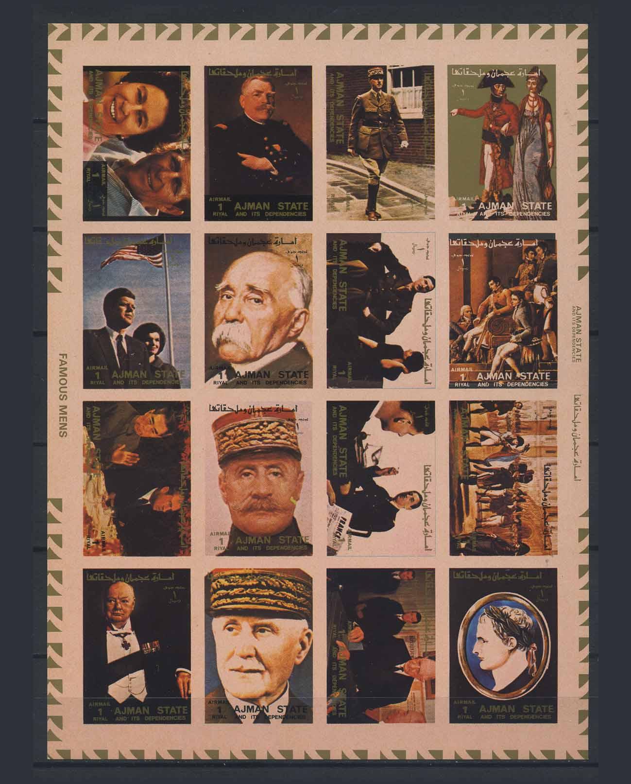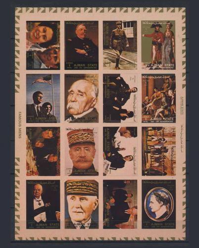 Почтовые марки. Аджман. 1973г. №2893в-2908в. Исторические деятели. Наполеон и др. Беззубц.