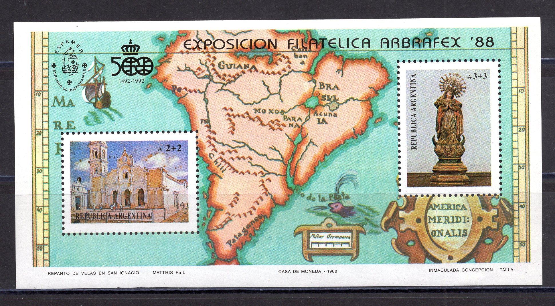 Почтовые марки. Аргентина. 1988г. Древняя карта Америки. Блок №37.