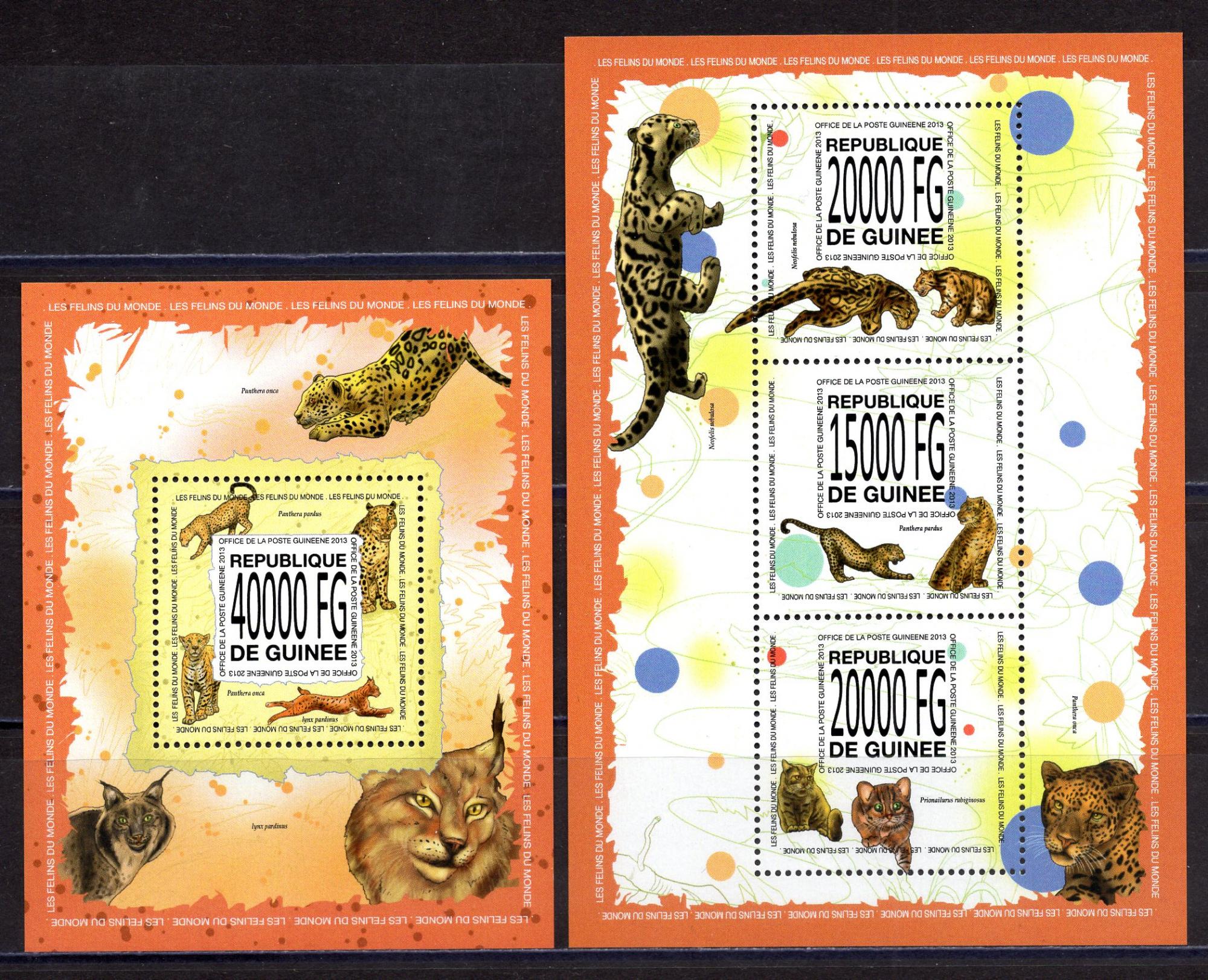 Почтовые марки. Гвинея. 2013г. Леопард. Блок №2293, №10065-10067.