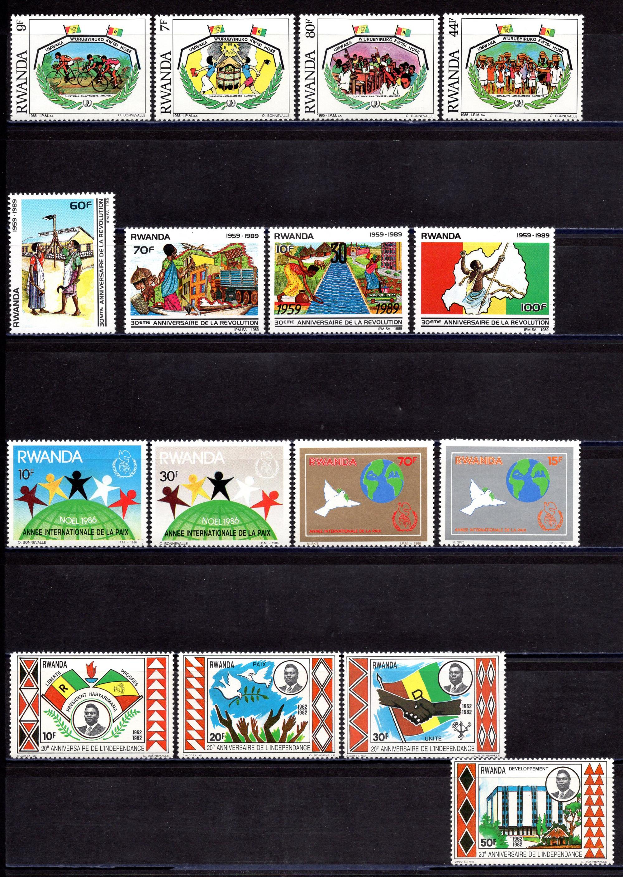 Почтовые марки. Руанда. 1985г. Год молодёжи. Спорт. Рождество и т.д. 4 серии. №1354-1357, №1314-1317 etc.