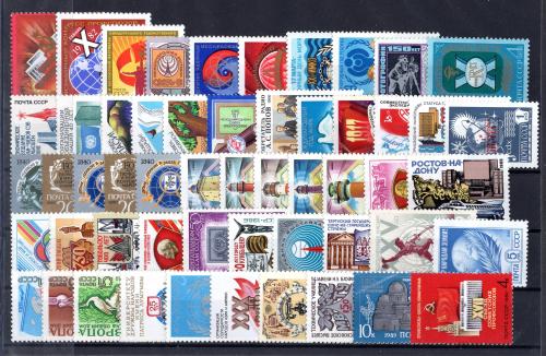 Почтовые марки. СССР. 1970-1990гг. Маяки. Выставки. Съезды. (Без планшетки). (54м). Сборный лот.