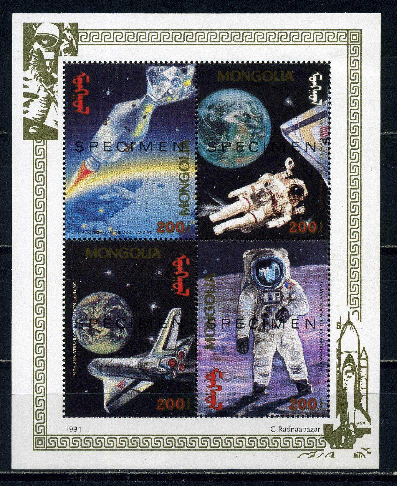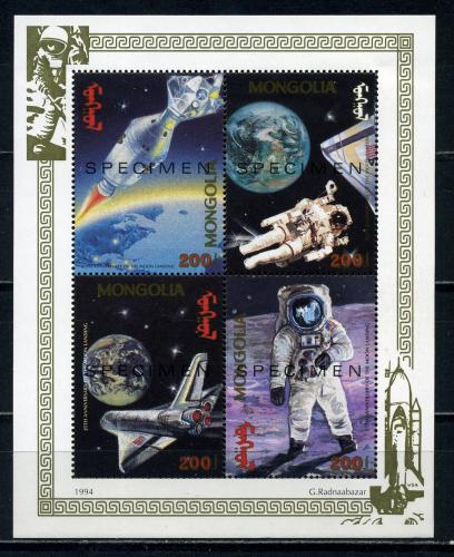 Почтовые марки. Монголия. 1994г. Космос. Надпечатка. SPECIMEN. МЛ. №2529-2532.