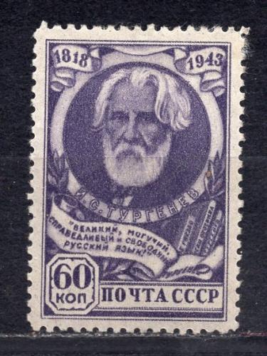 Почтовые марки. СССР, 1943 г. №872. Тургенев. (Кат.: 1800 руб.)