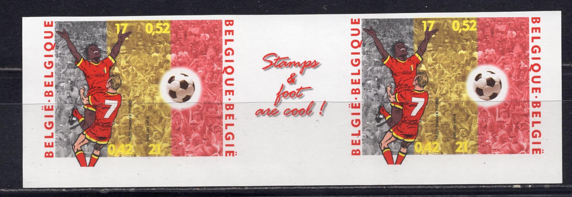 Почтовые марки. Бельгия, 2000 г. №2943В-2944В. Футбол. Безз. Сцепка с купоном.