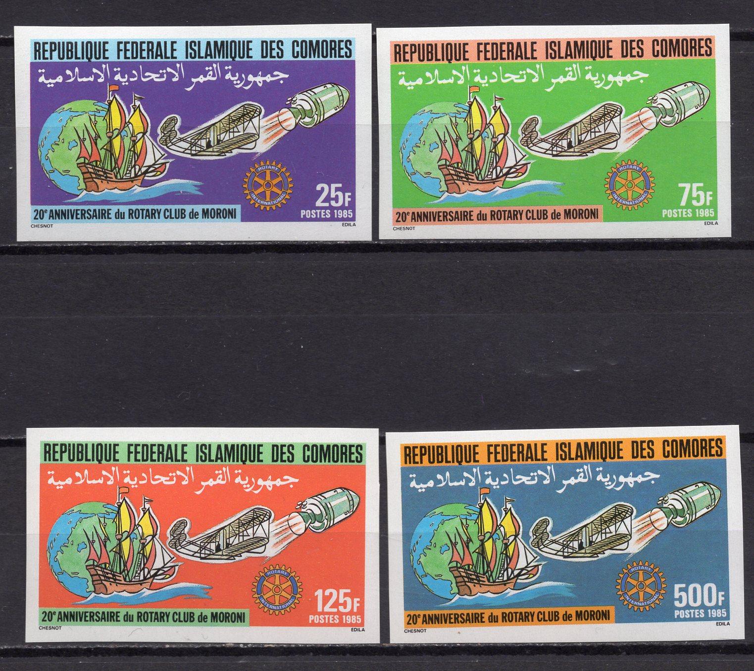 Почтовые марки. Коморы, 1985 г. Космос. Корабли. Rotary Club. №758-61В.