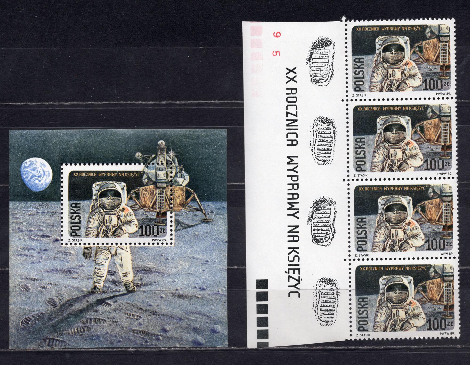Почтовые марки. Польша. 1989г. Космос. Аполло-11. №3206. Сцепка. Блок №109.