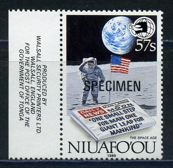 Почтовые марки. Ниуафо'оу. 1989г. Космос. Человек на Луне. Надпечатка. SPECIMEN. RARE! №153s.