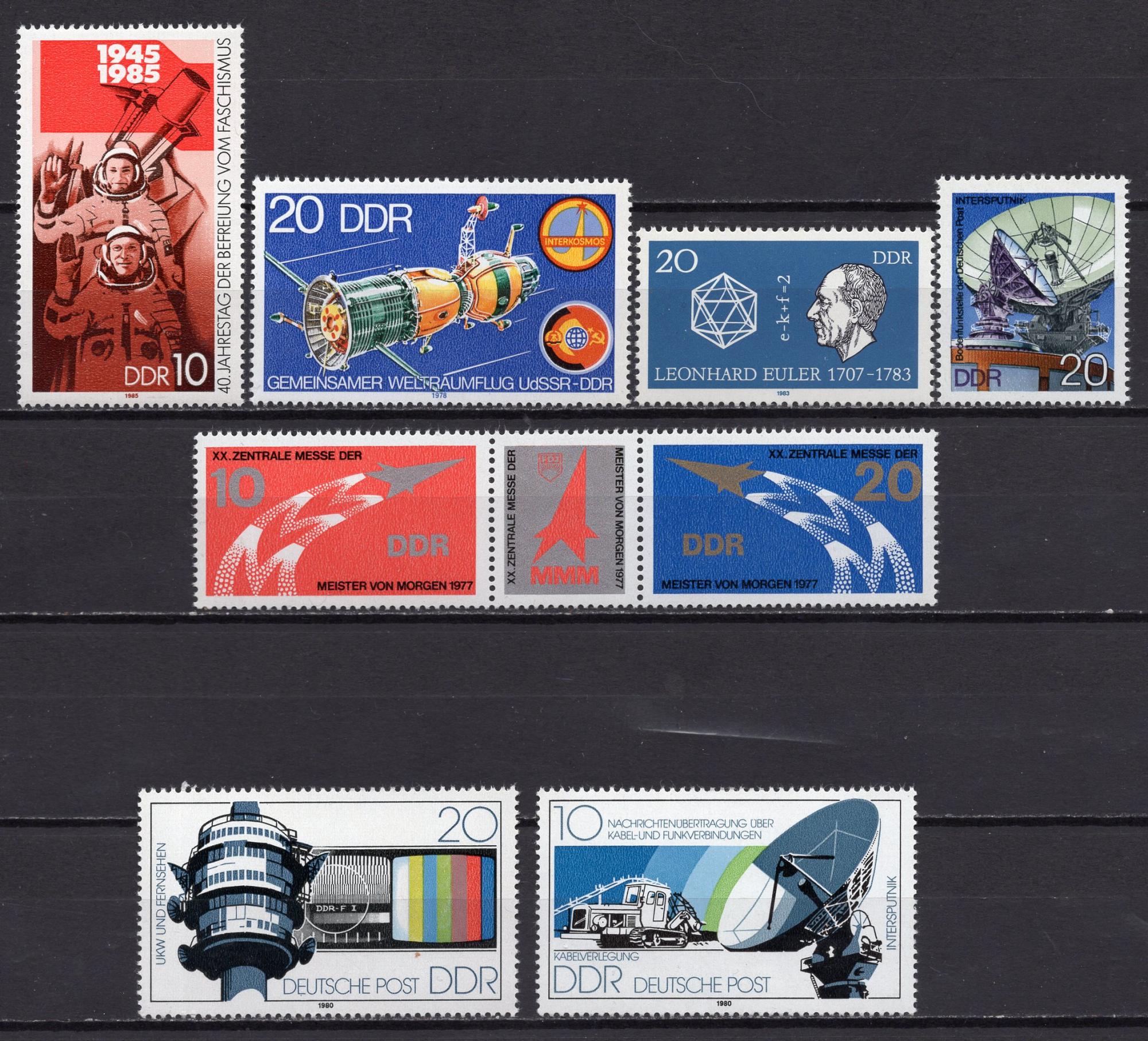 Почтовые марки. ГДР, 1976-1985 г. №2122, 2268-69 etc. Космос. Наука. Леонард Эйлер. Сборная.