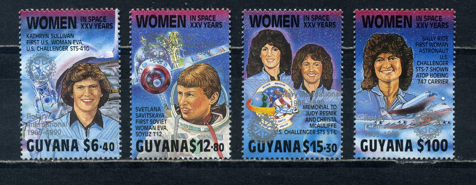 Почтовые марки. Гайана. 1989г. Космос. Женский экипаж на орбите. Надпечатка. №3049-3052.