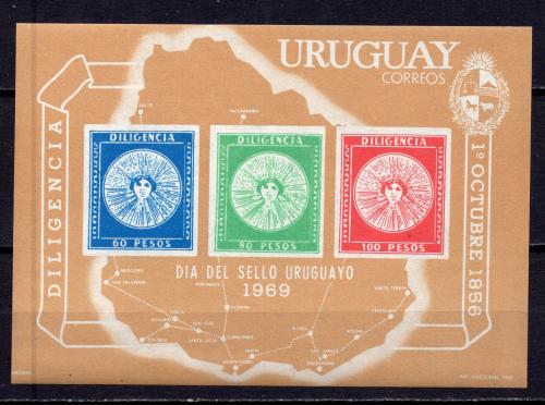 Почтовые марки. Уругвай, 1969 г. Первая марка. Бл. 12