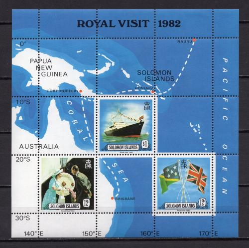 Почтовые марки. Соломоны, 1982 г. Королевский визит. Карты. Бл. 11