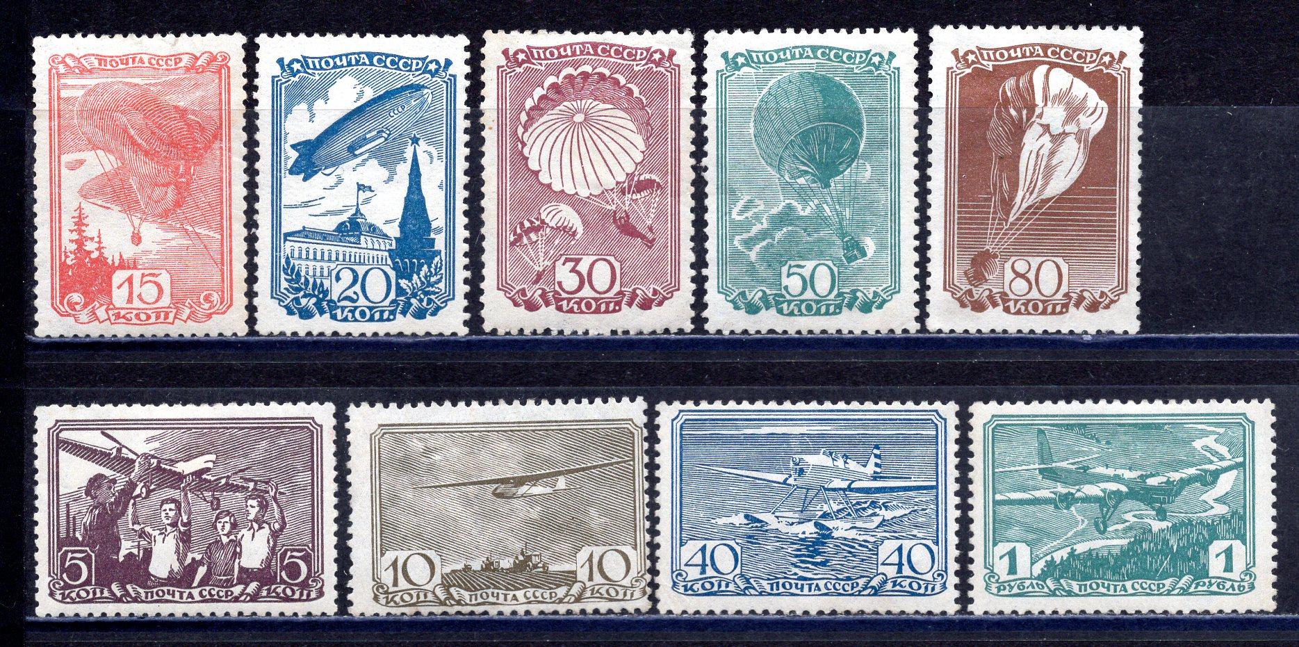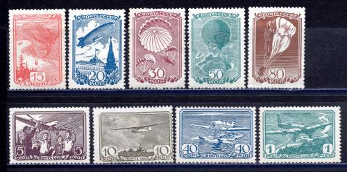 Почтовые марки. СССР. 1938г. Авиационный Спорт. №625-633.