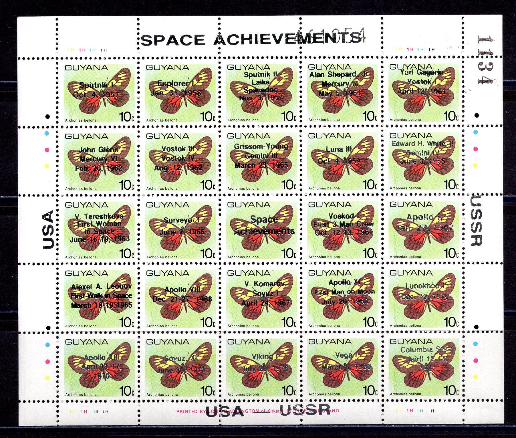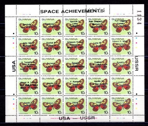 Почтовые марки. Гайана. 1989г. Бабочки. Надпечатка. Серебро. Космос. №2627-2631. Лист.