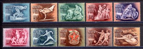 Почтовые марки. Венгрия. 1950г. Спорт. №1129-1138.