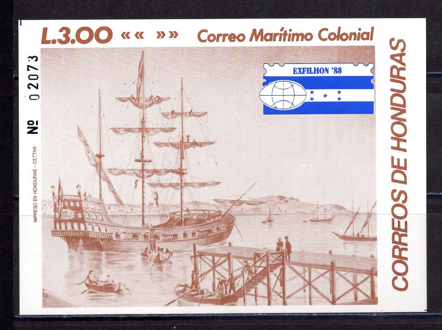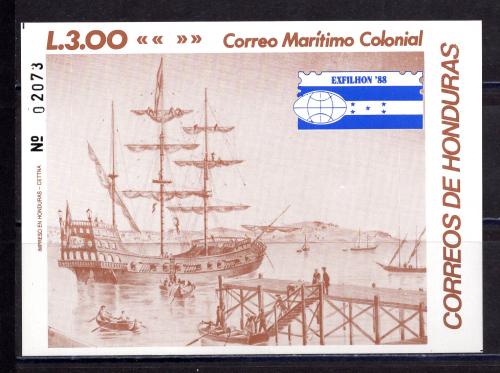 Почтовые марки. Гондурас. 1988г. Филвыст. Корабли. Блок №40.
