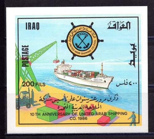 Почтовые марки. Ирак. 1987г. Порт. Корабли. Блок №52.