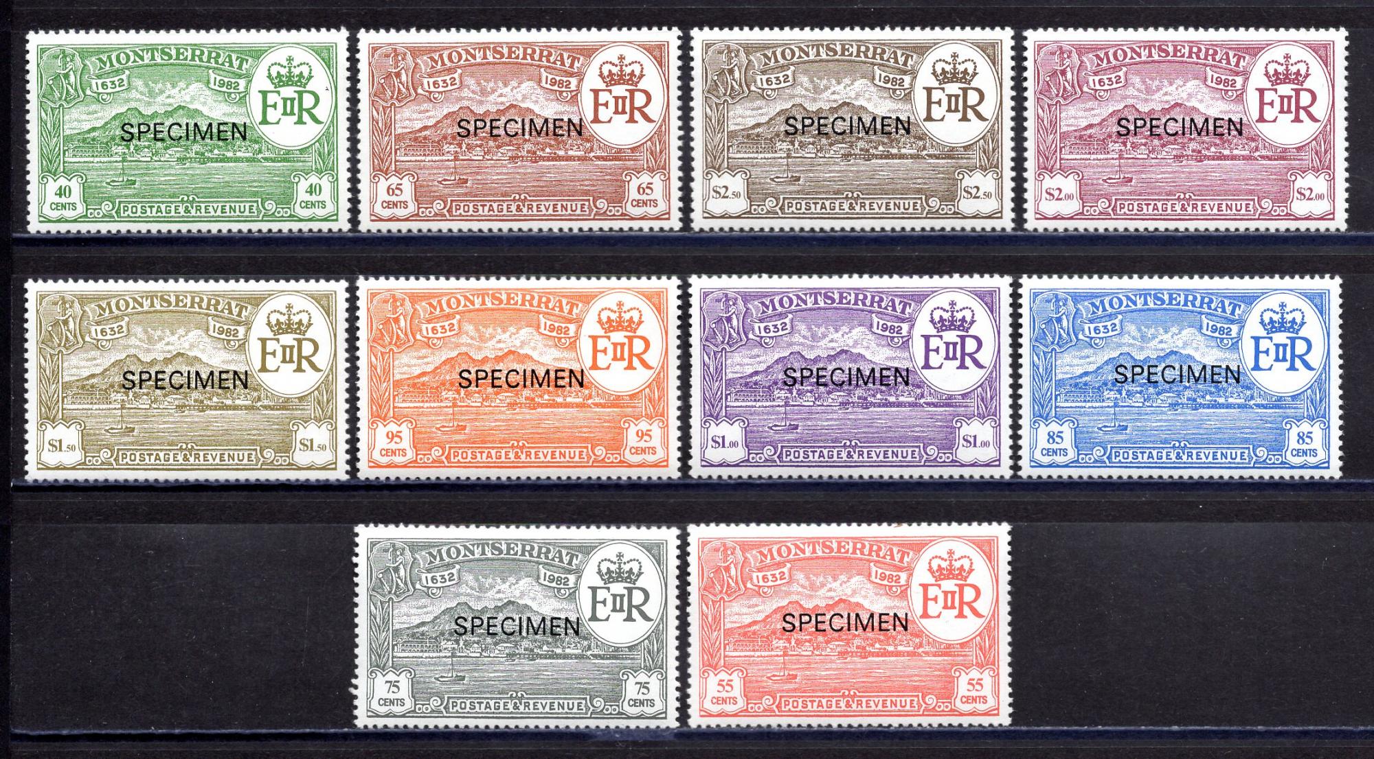 Почтовые марки. Монсеррат. 1982г. 350-летие ОТКРЫТИЯ. SPECIMEN. Блок №484-493.