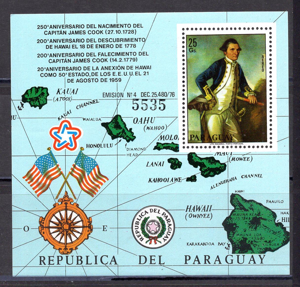 Почтовые марки. Парагвай. 1978г. Капитан Кук. Блок №328.