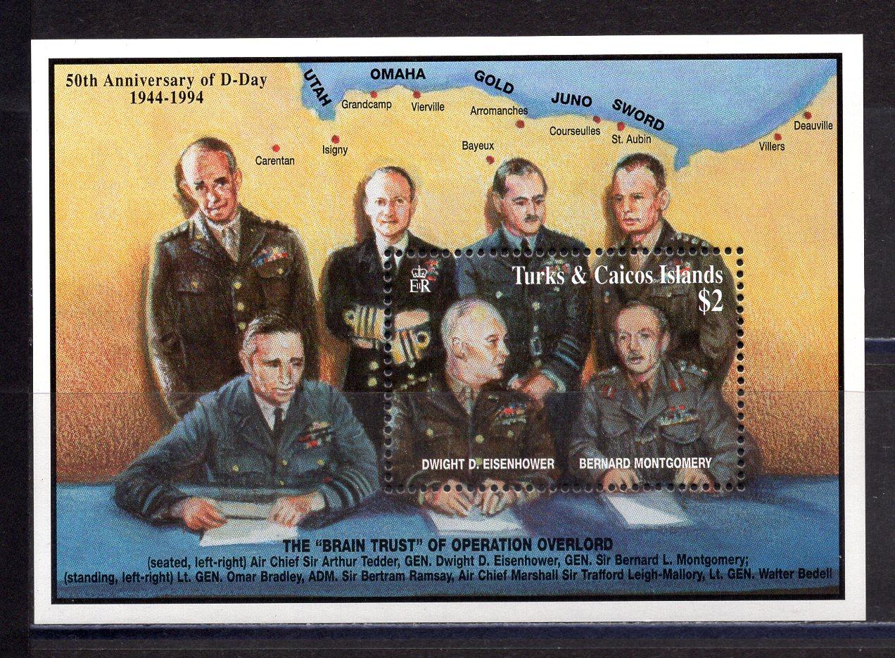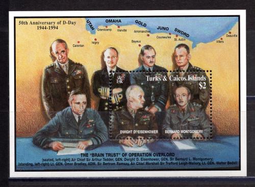Почтовые марки. Тёркс и Кайкос. 1994г. Война. Эйзенхауэр и Монтгомери. Блок №141.